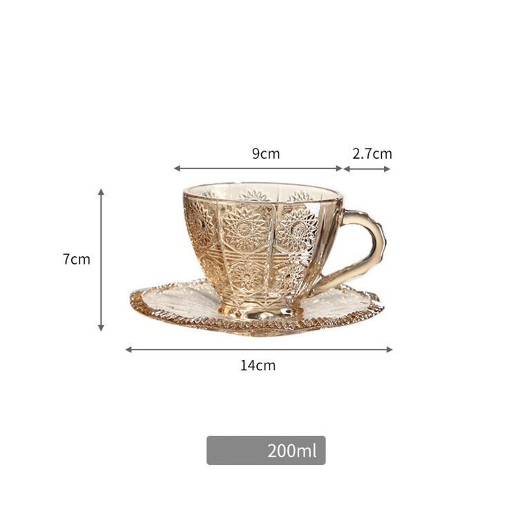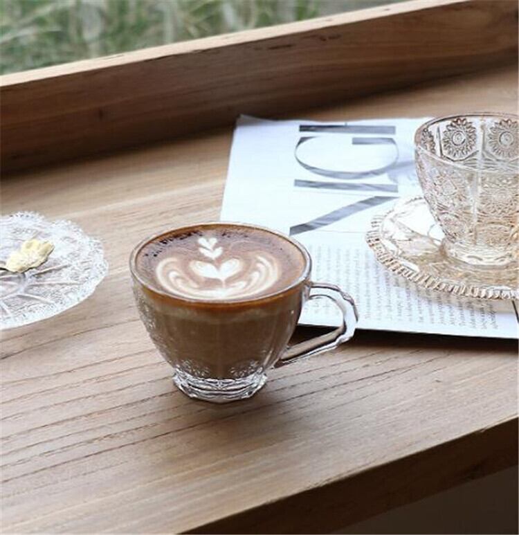 ガラス コーヒーカップ ソーサー レトロ ハンドル付き ティーカップ セット 大人気