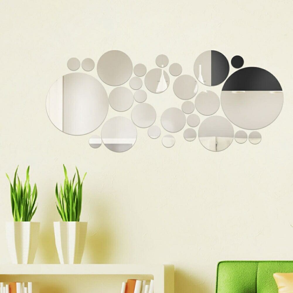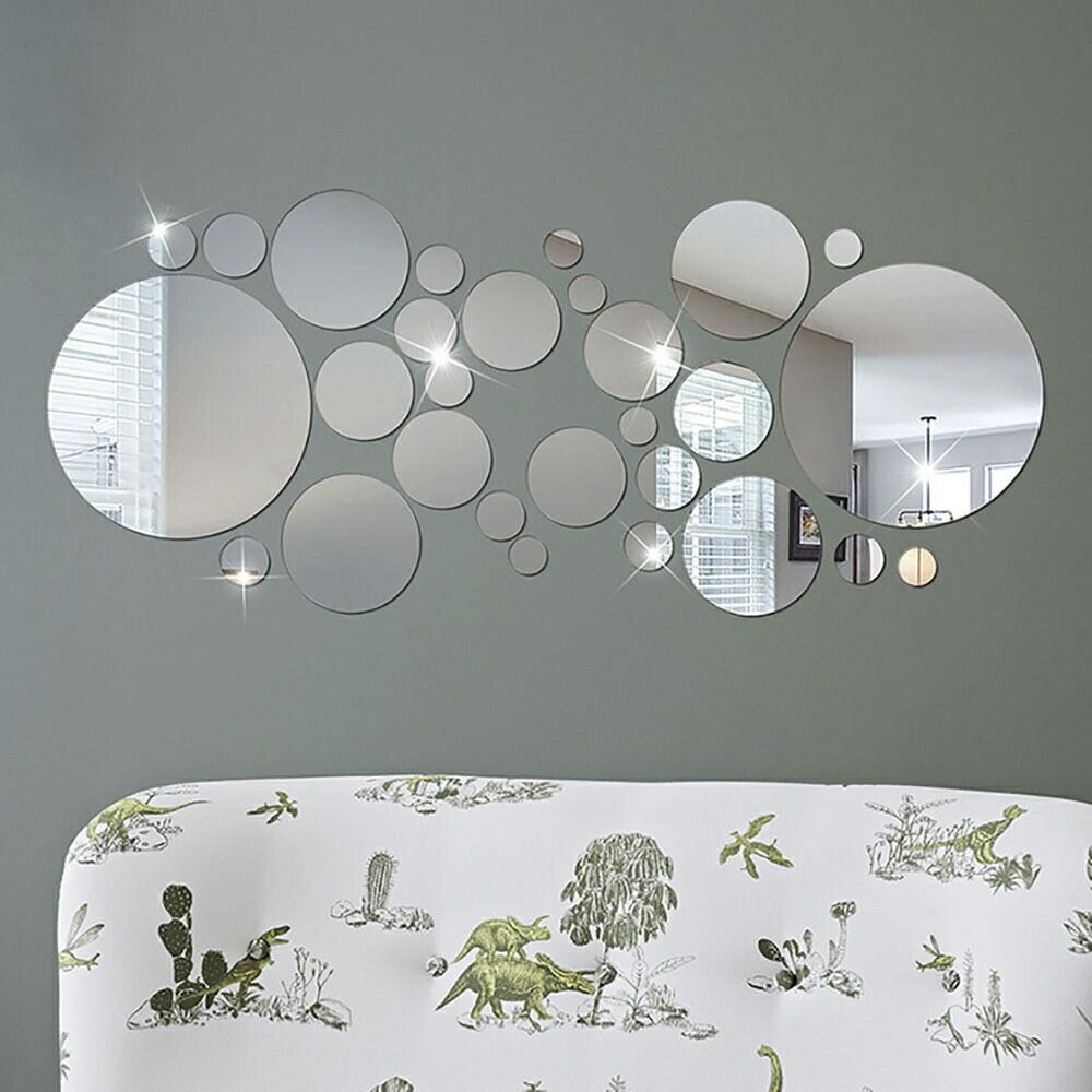 【在庫限り】ミラー 鏡 丸ミラー 26枚セット セット シールタイプ ウォールミラー