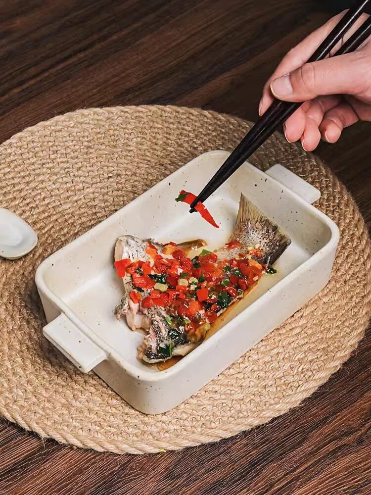 高温耐性 個性 レトロ 魚皿 トレンド 両耳 陶磁器焼き皿 電子レンジ焼き皿 家庭用 皿