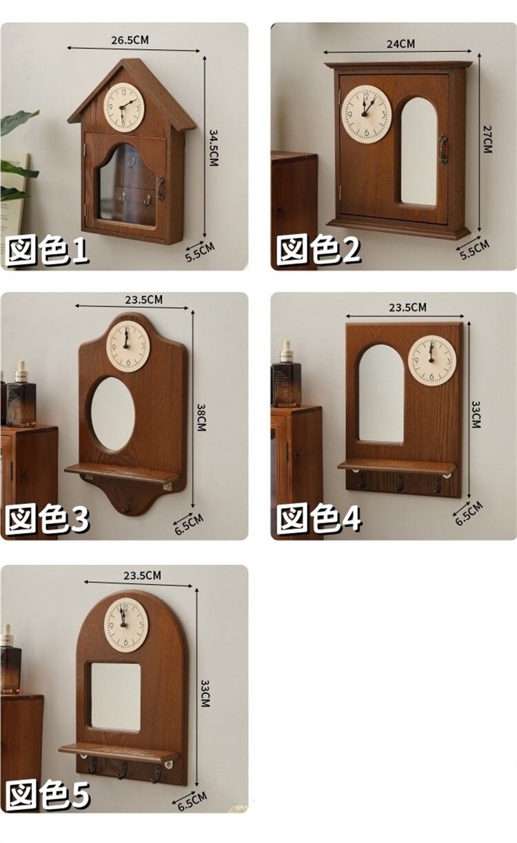 レトロ 木製時計 鍵棚 バッグ収納棚 壁掛け時計 玄関飾り 鍵フック 新作