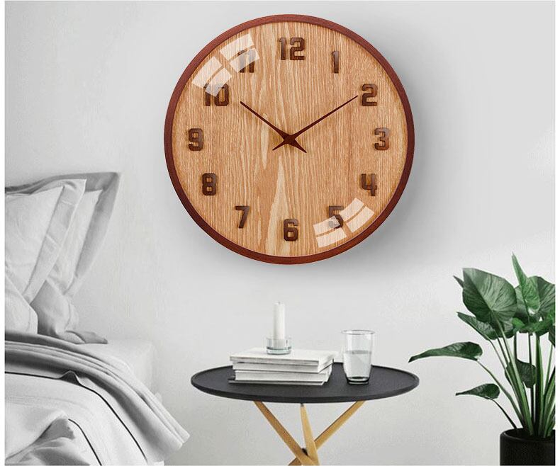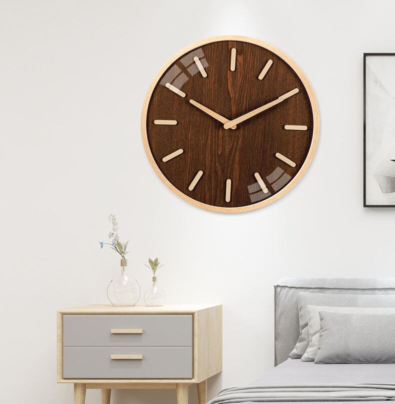 【12インチ】木製 シンプル 見やすい数字 壁掛け 時計 モダン インテリア雑貨 ウォールクロック