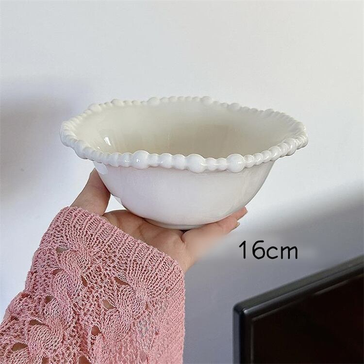 パール縁付きフレンチスタイル陶器食器【16cmボウル】