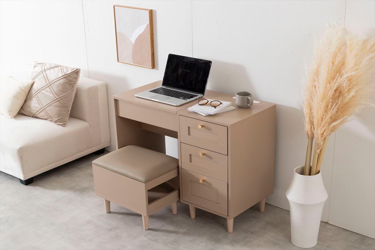 品のある框デザインと柔らかなニュアンスカラーが印象的な『Calan』シリーズのドレッサーデスク