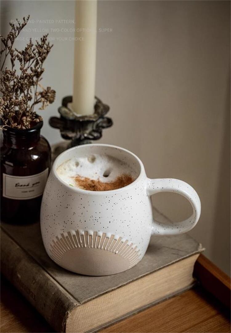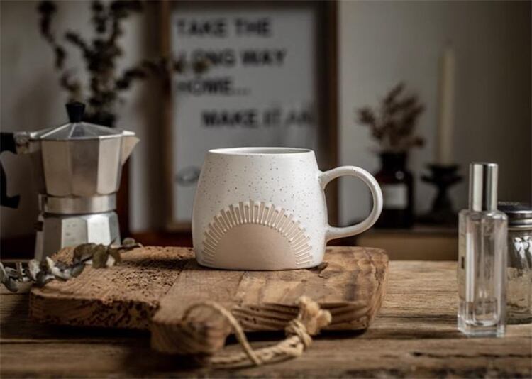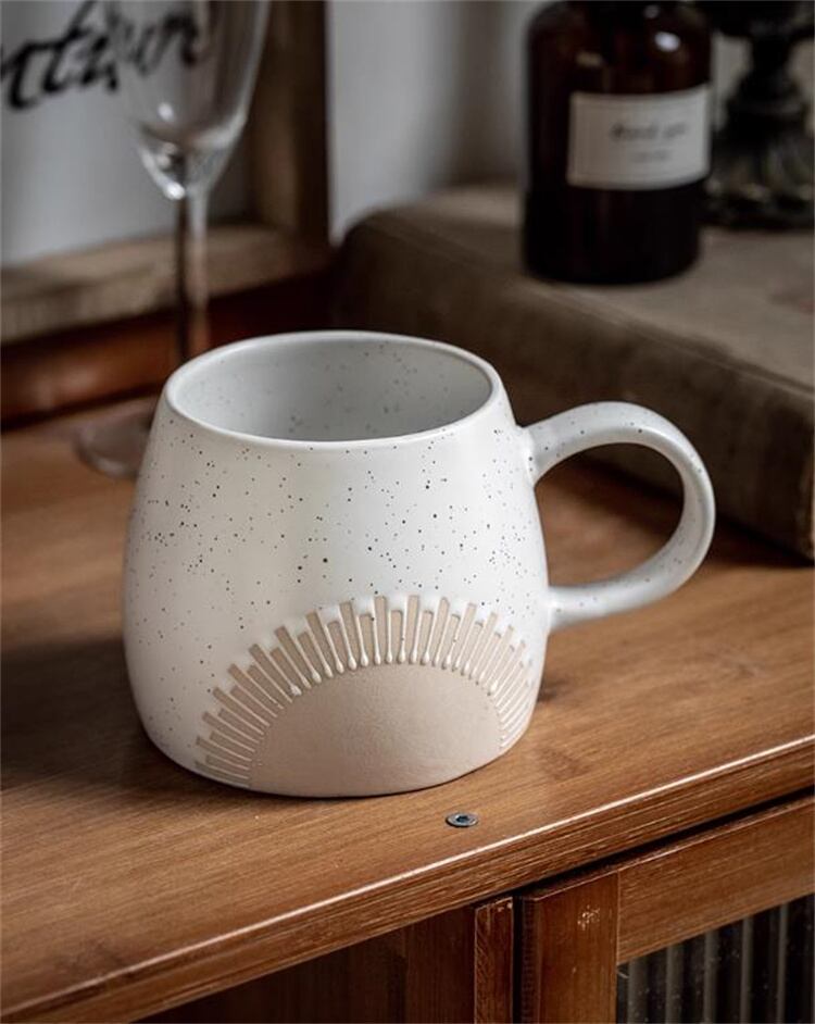 レリーフが印象的なマグカップ。