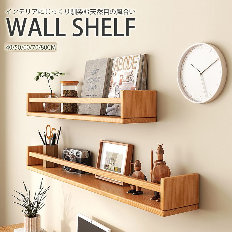インテリアにじっくり馴染む天然目の風合い ウォールシェルフ