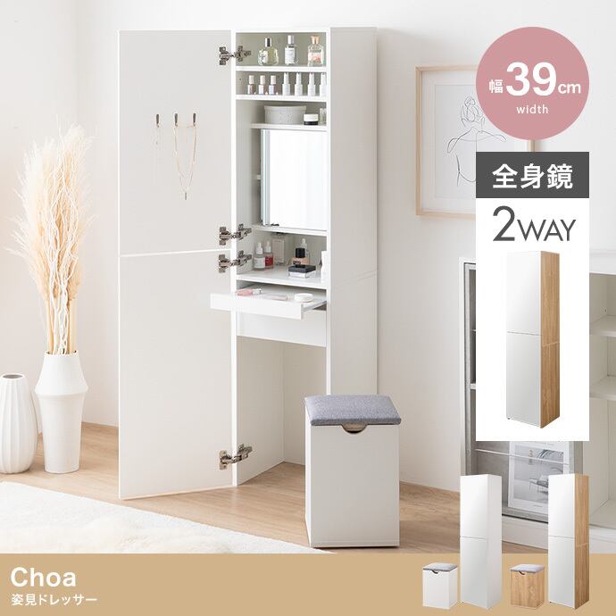 ミラーも収納もドレッサーも、省スペースで叶える『Choa(チョア)』姿見ドレッサー
