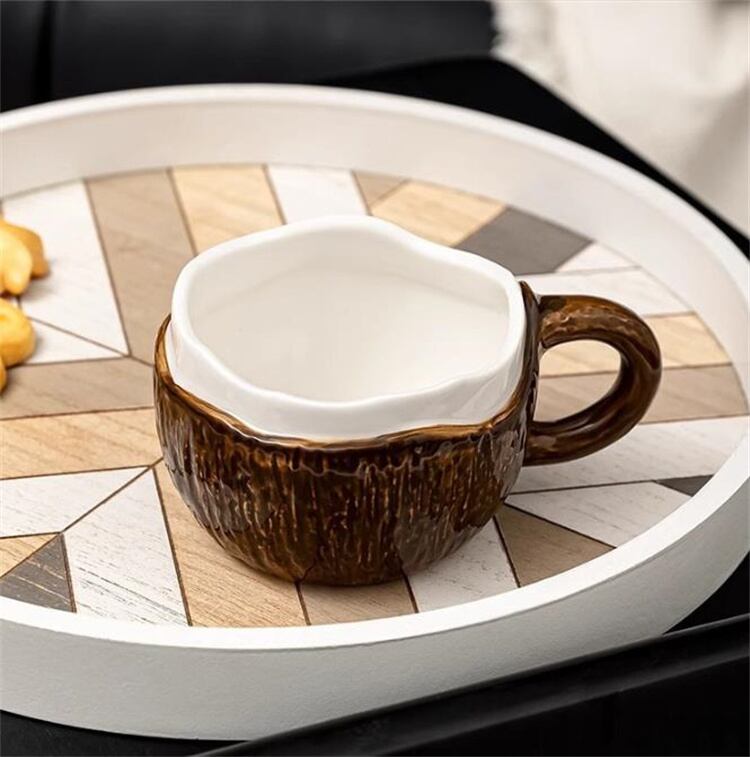 ヤシの実を切って作ったみたいな見た目のカップ。