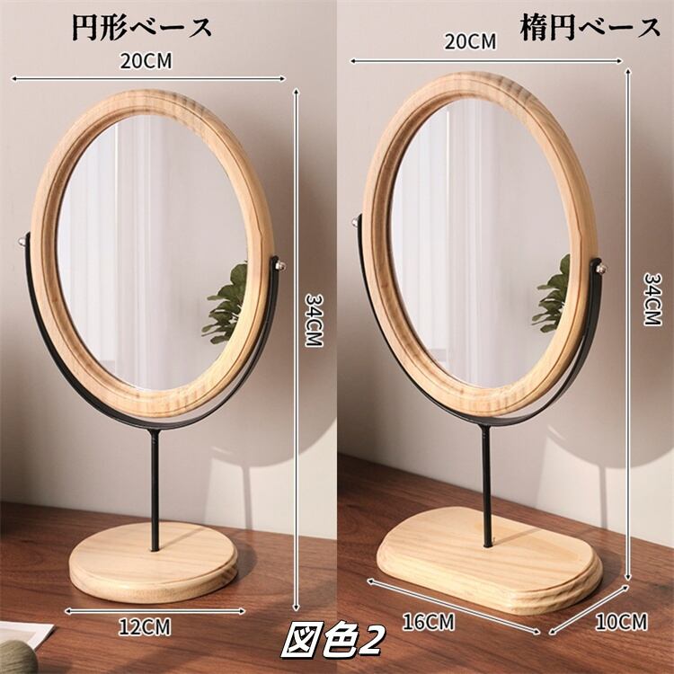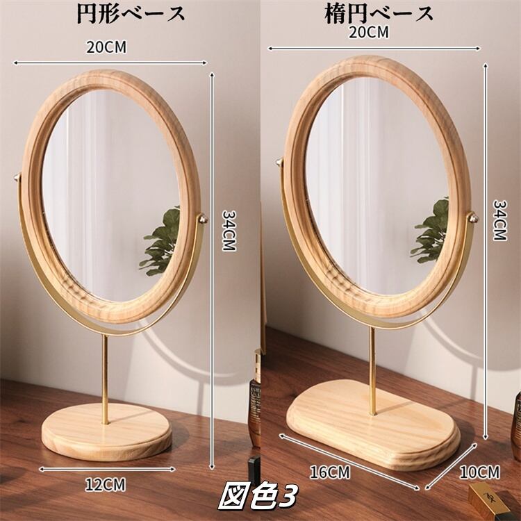 デスクトップミラー ハイビジョンミラー レトロ 実木化粧鏡 家庭用 デスクトップミラー