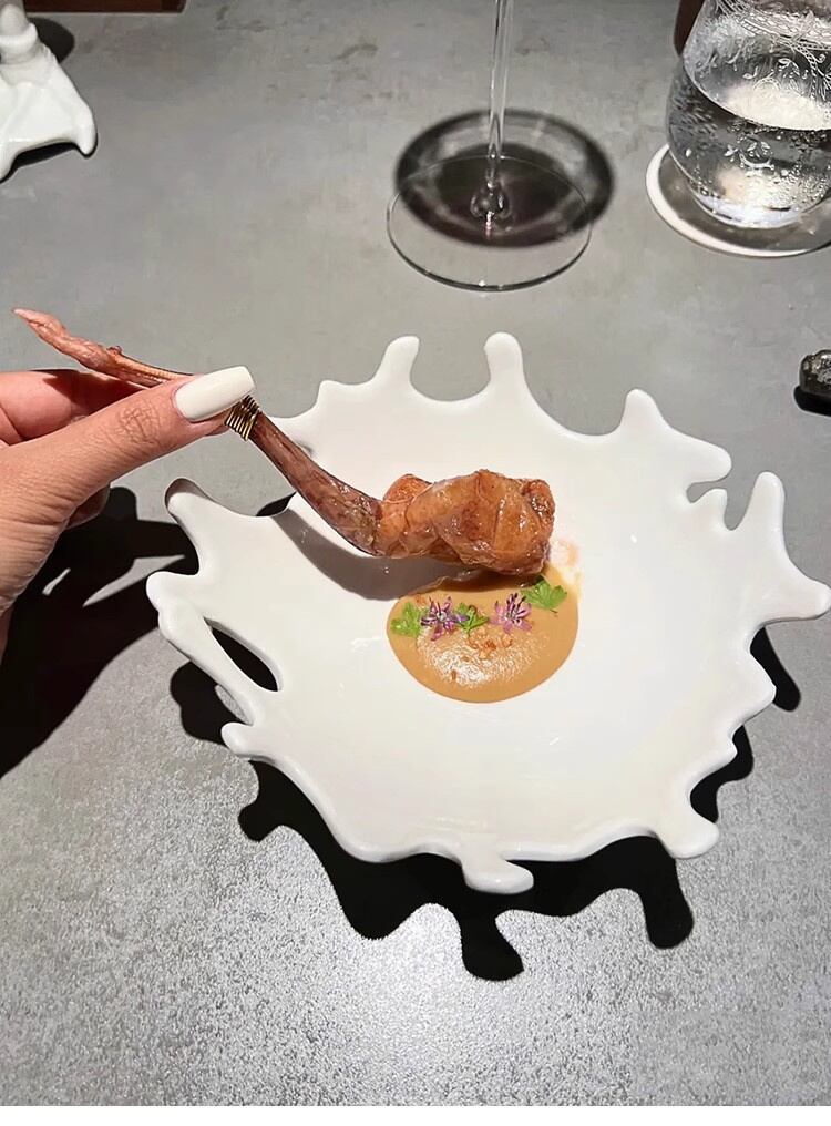 【珊瑚デザインプレート】自然の美しさを再現した波打つエッジが目を引き、インスタ映え間違いなしの逸品です!高温強化磁器を使用し、白い釉薬が食材の色を引き立てます。滑らかな触り心地で油汚れも付きにくく、食器洗浄機・オーブン対応の実用性も◎。不規則なフォルムが料理の盛り付けをアートに変える、レストランからご家庭までマルチに活躍するデザインアイテムです。