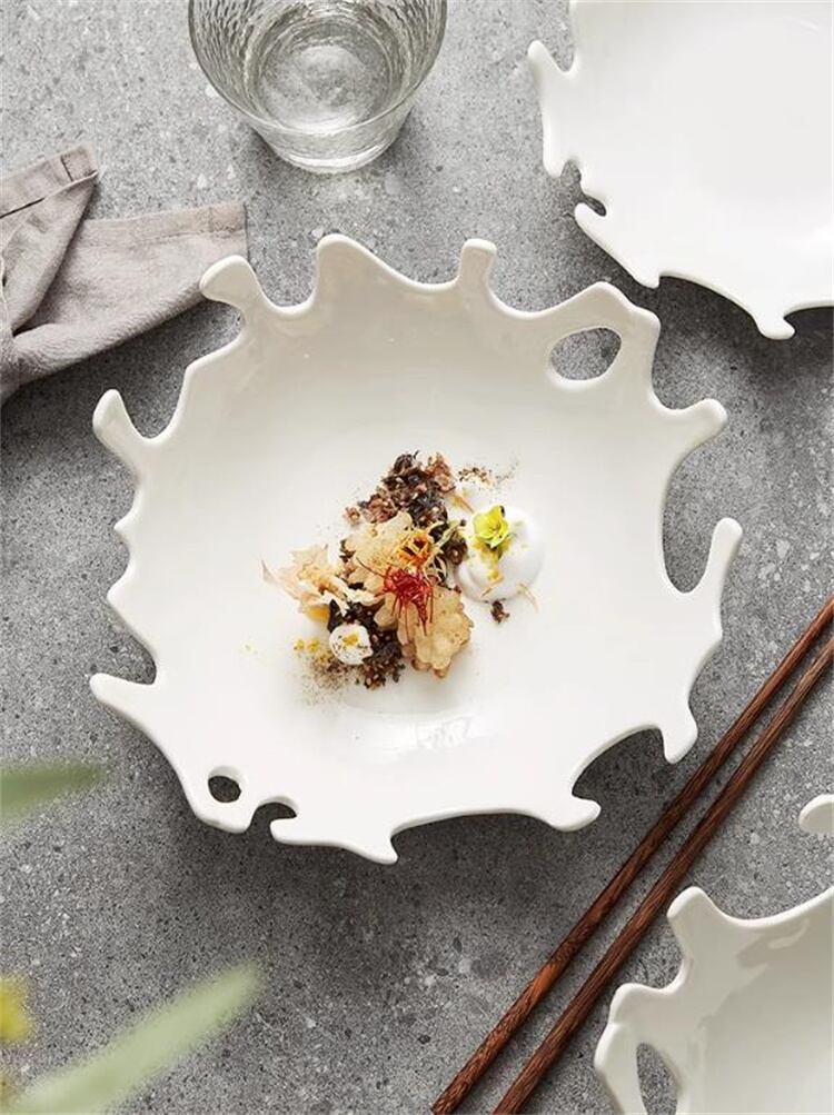 【珊瑚デザインプレート】自然の美しさを再現した波打つエッジが目を引き、インスタ映え間違いなしの逸品です!高温強化磁器を使用し、白い釉薬が食材の色を引き立てます。滑らかな触り心地で油汚れも付きにくく、食器洗浄機・オーブン対応の実用性も◎。不規則なフォルムが料理の盛り付けをアートに変える、レストランからご家庭までマルチに活躍するデザインアイテムです。