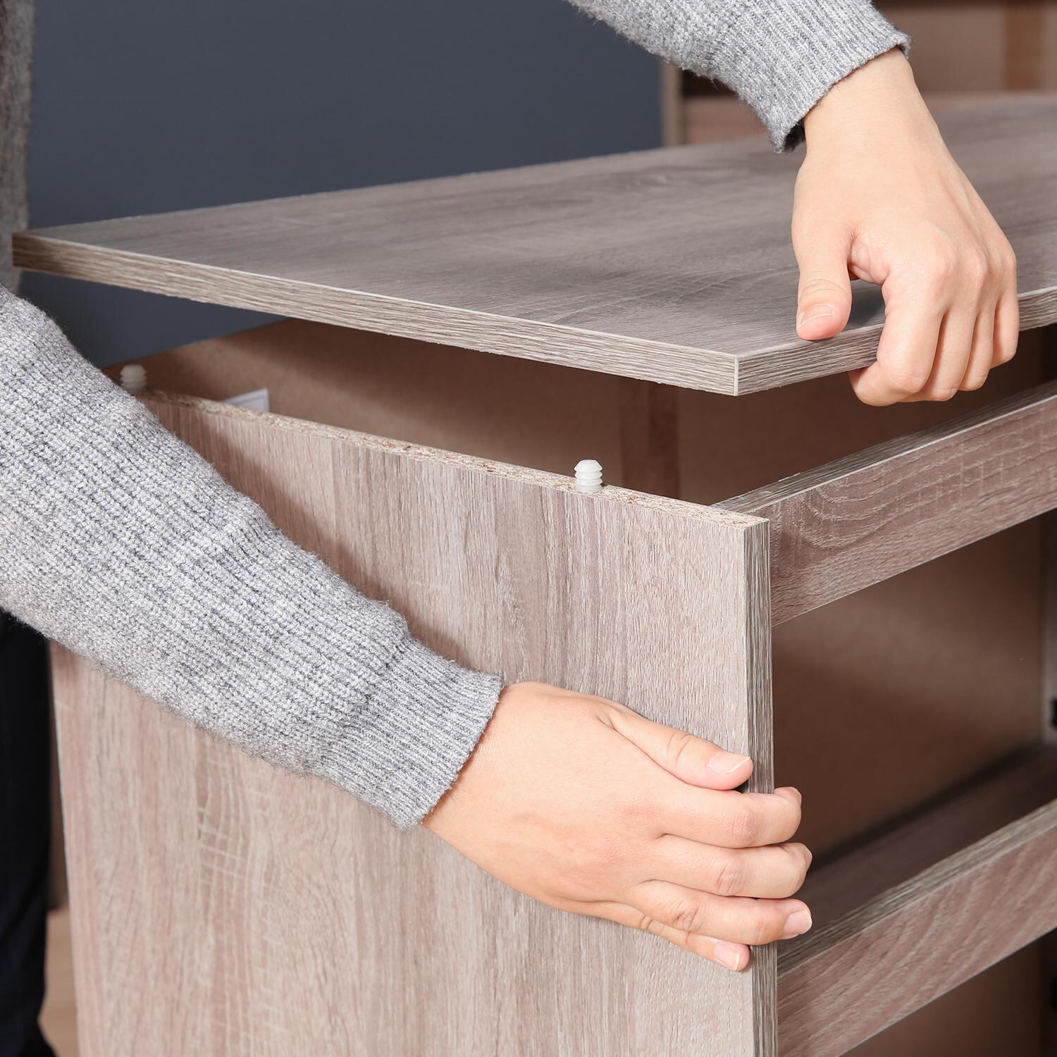 ネジ穴がないため見た目もスッキリ、完成品のような高級感のある仕上がりになります。
