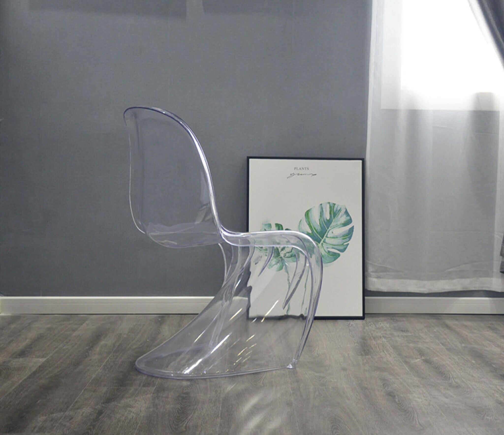 プラスチックの一体成型という画期的なデザインは、お部屋のアクセントとしてはもちろん、座り心地がよく、スタッキングが可能な実用的なチェアでもあります