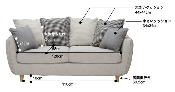 仕様木フレーム ポリエステル Sバネ ポケットコイル ※クッション6個付