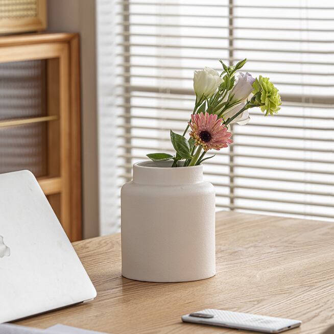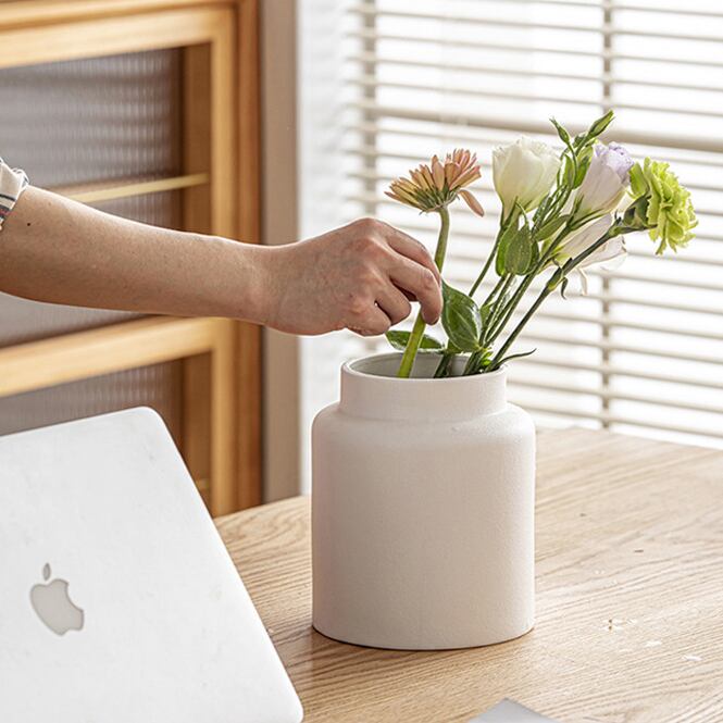 ・お花を引き立てるマットな質感とシンプルな形の花瓶です。