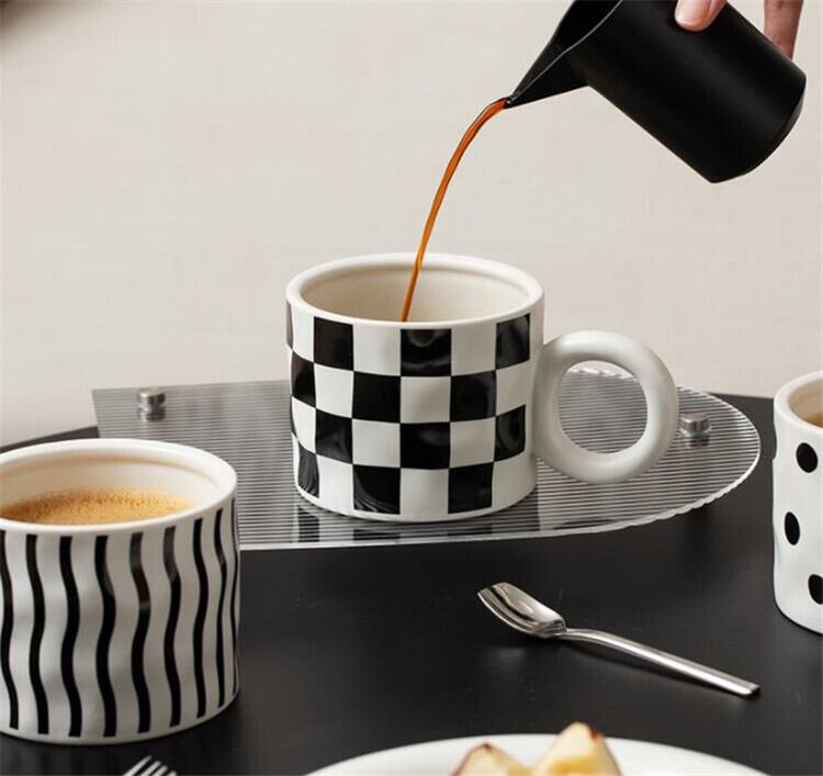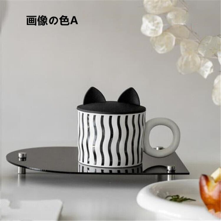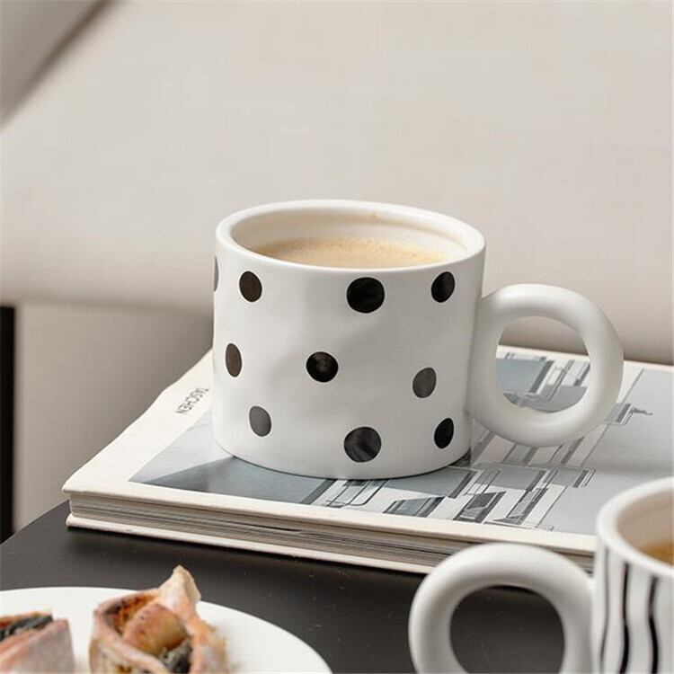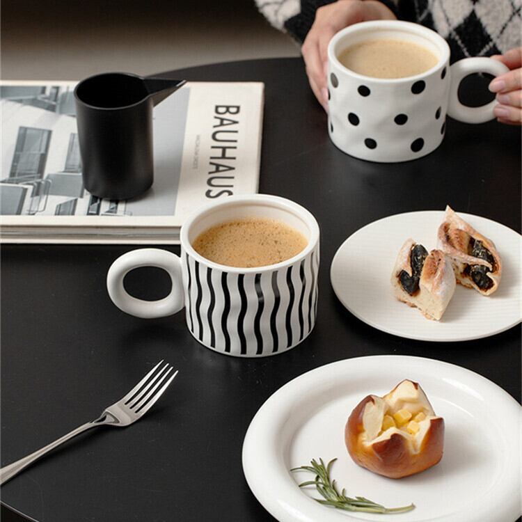 モノトーンの絵柄と丸い持ち手がなんともかわいらしいマグカップです。