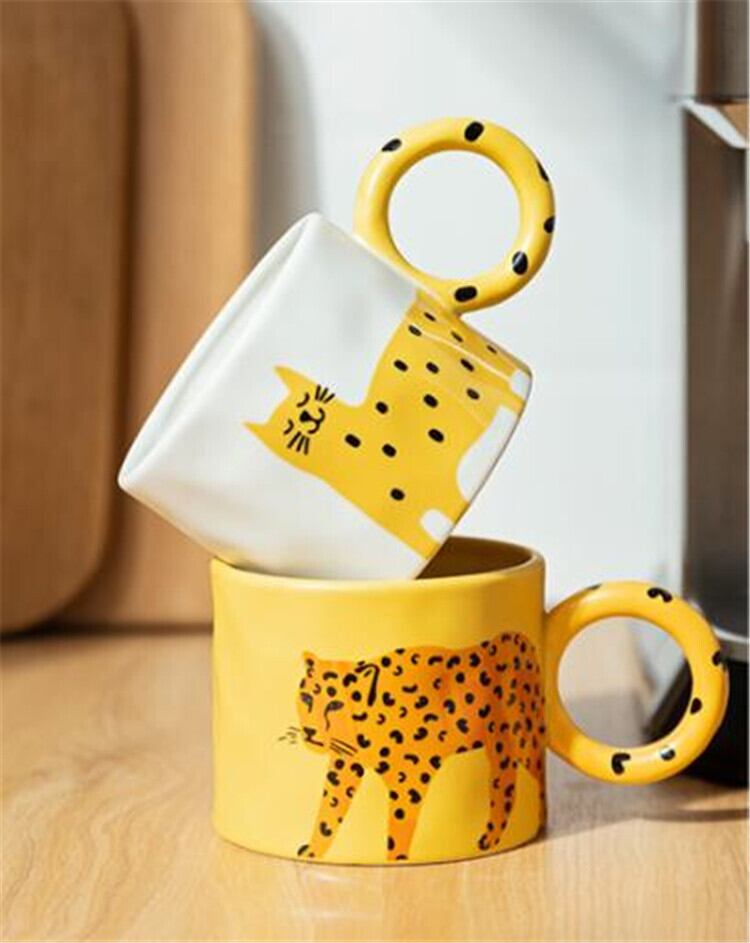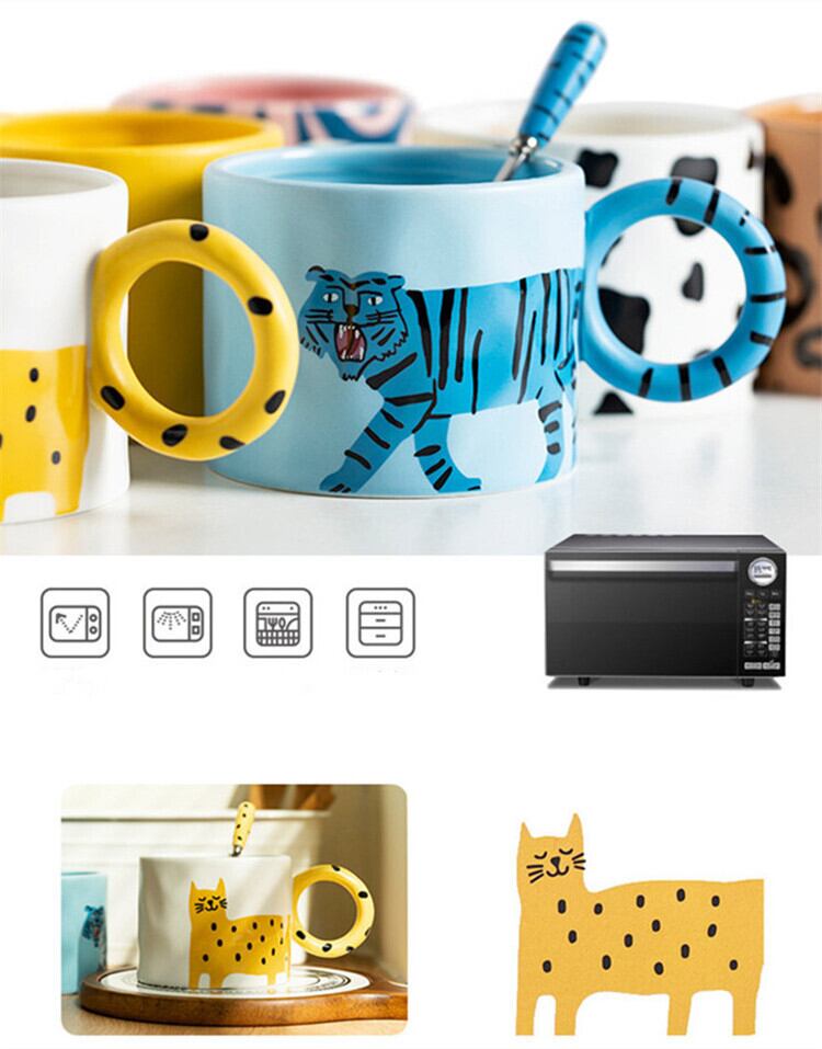 ポップな色合いのネコ科のどうぶつマグカップです。
