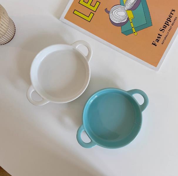 耳付きのぽってりした形がシンプルながらシンプルすぎず程よい存在感のお皿です。