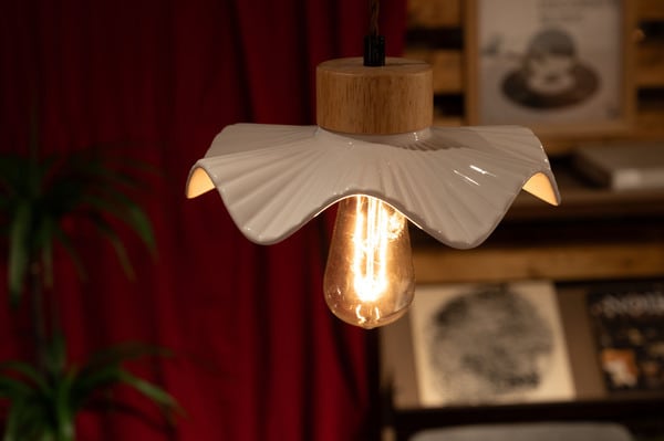 仕様陶器 天然木(ラバーウッド) 水性ラッカー塗装 アルミ 電球付:LHB-90 LED電球対応可能