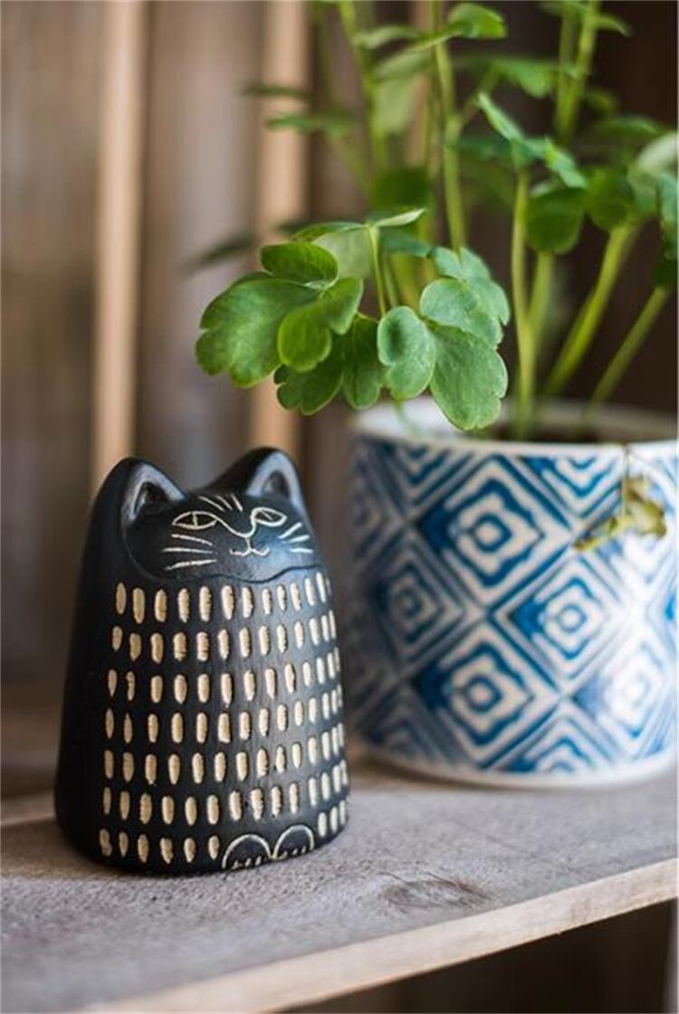 小さいながらもどっしりしたシルエットのネコの置物です。