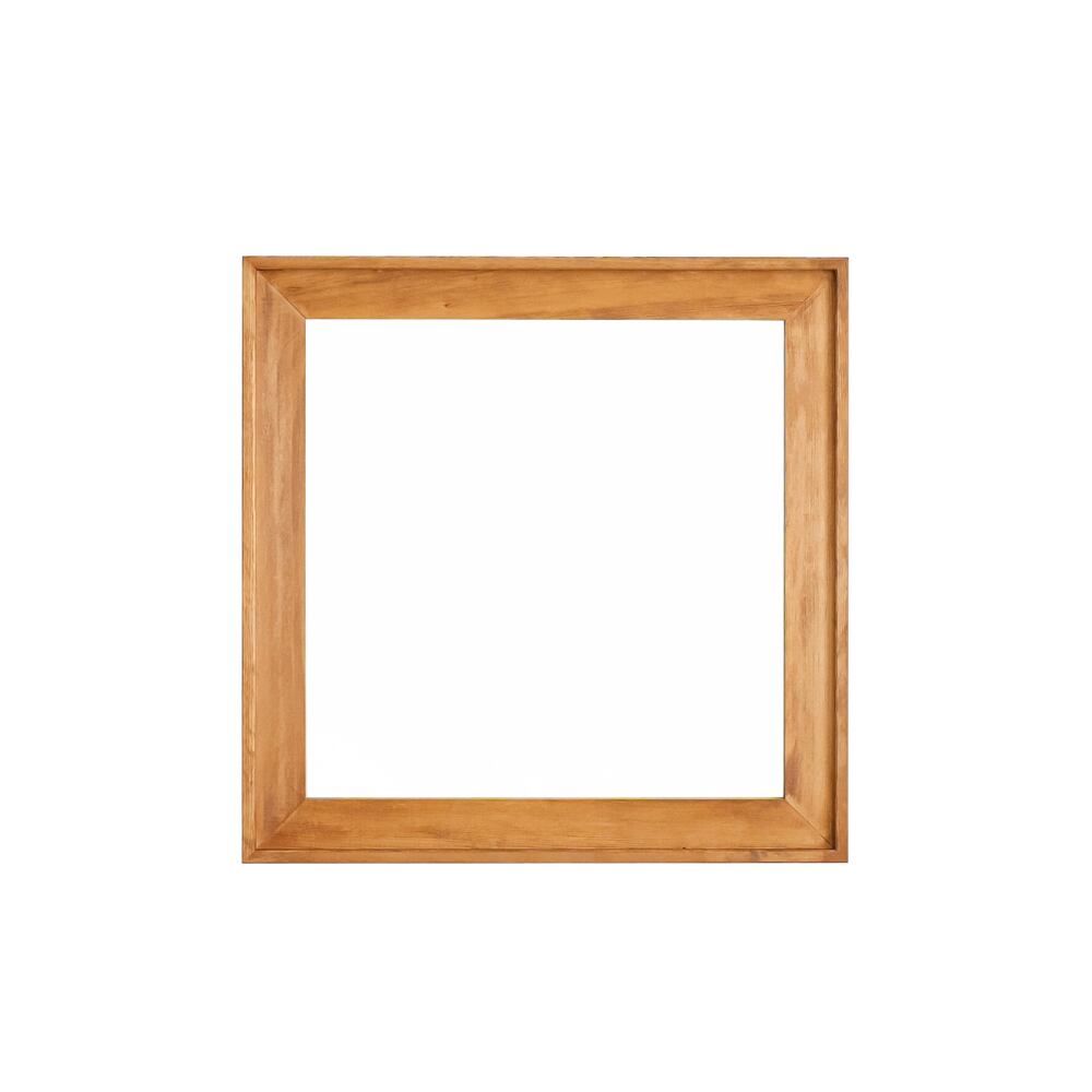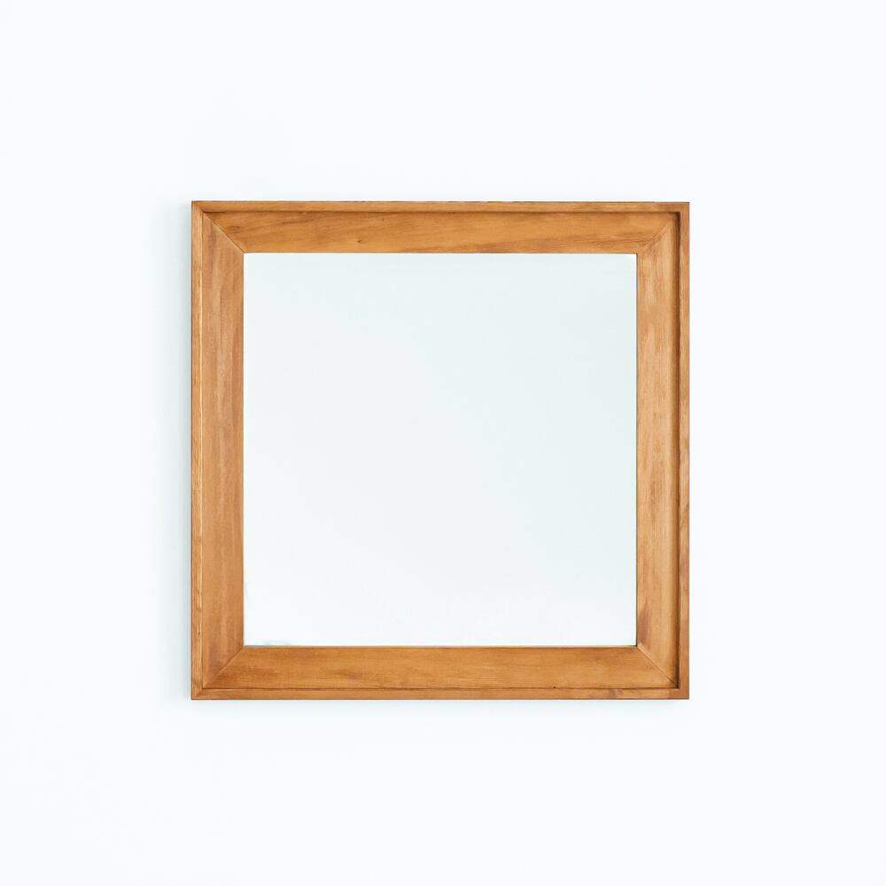 重厚感のあるL型の木枠が印象的なウォールミラー