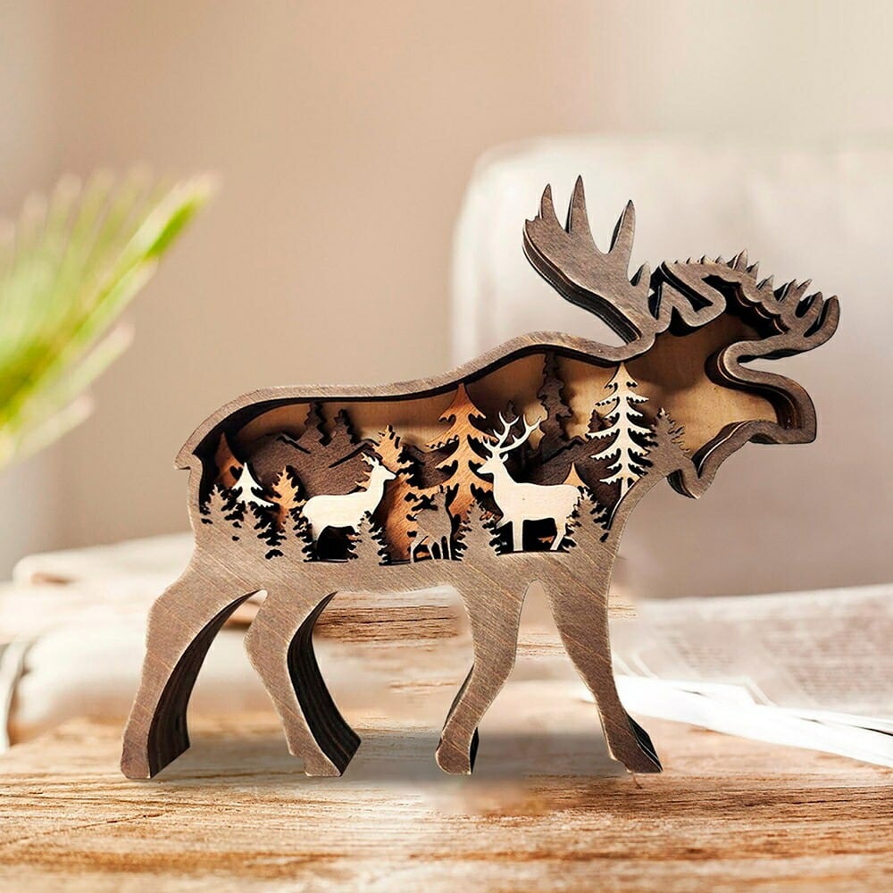 こちらの置物は奥行きが4段階になっており、立体的でとても幻想的です。全て木製です