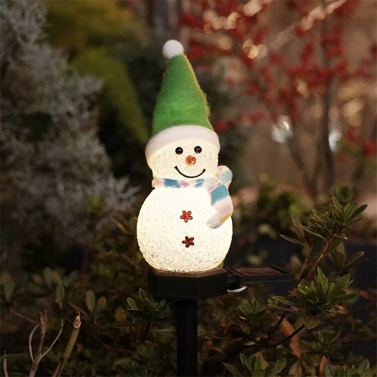 可愛らしいスノーマン型のソーラーガーデンライトです。
