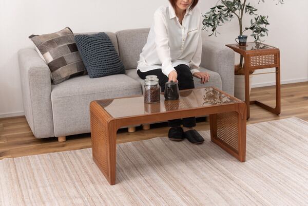 仕様天然木(ミンディ) ラタン ラッカー塗装 5mm強化ガラス