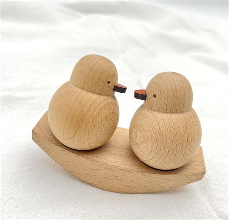 木製のことりのカップルの置物