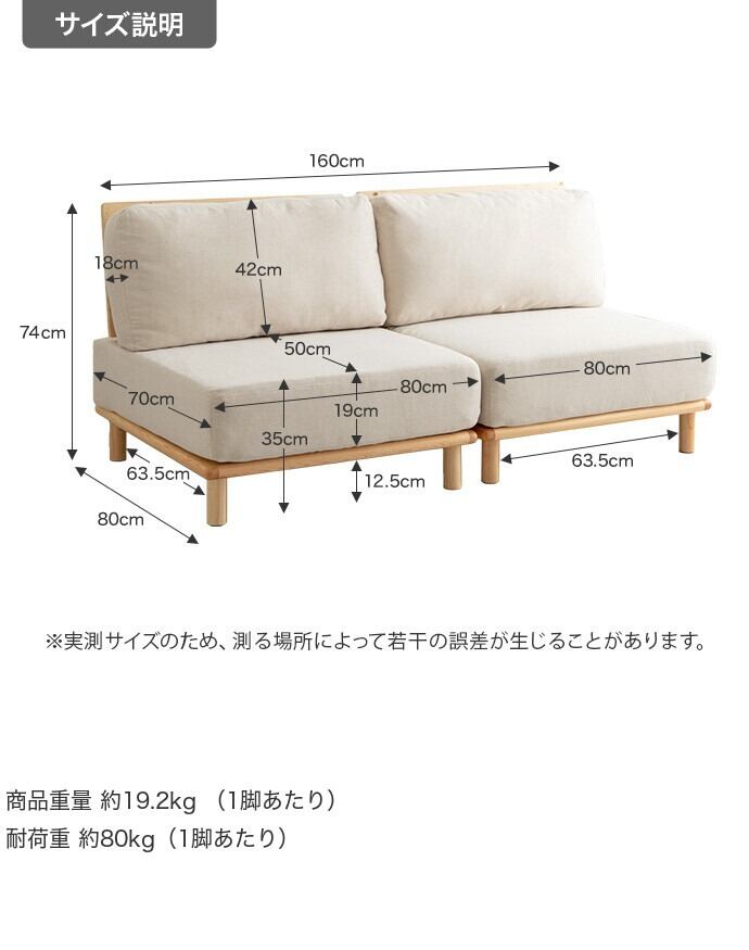 幅160cm(80cm+80cm)×奥行80cm×高さ74cm (座面高:35cm)