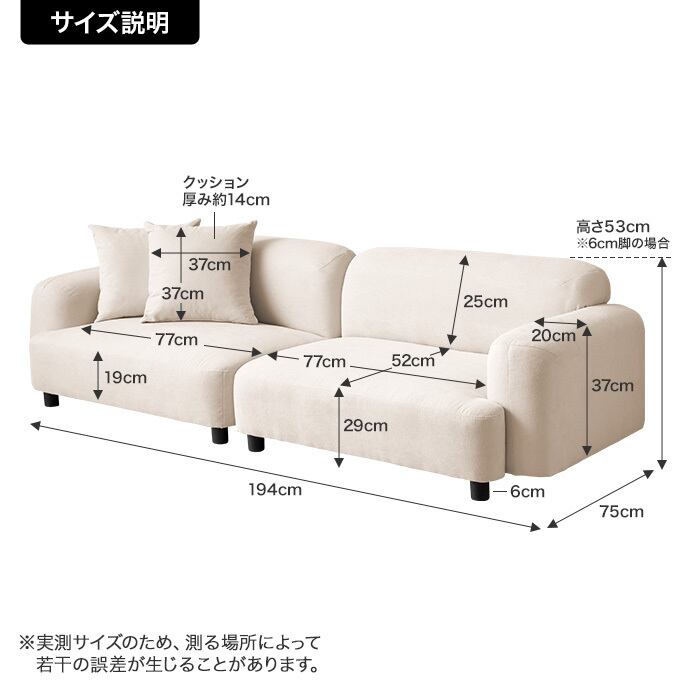 幅194cm×奥行75cm×高さ53cm(座面高:29cm)