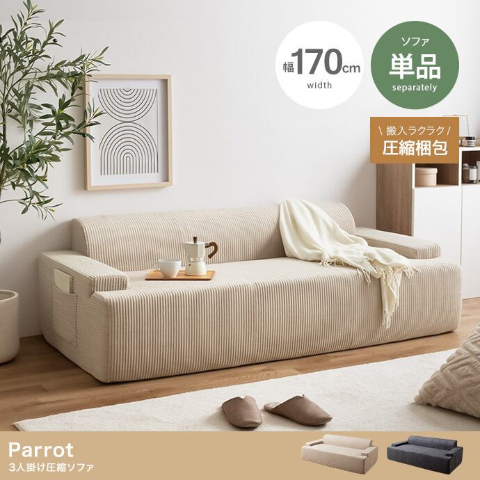 小さく届いて広々使える、快適圧縮シリーズの3人掛けソファ