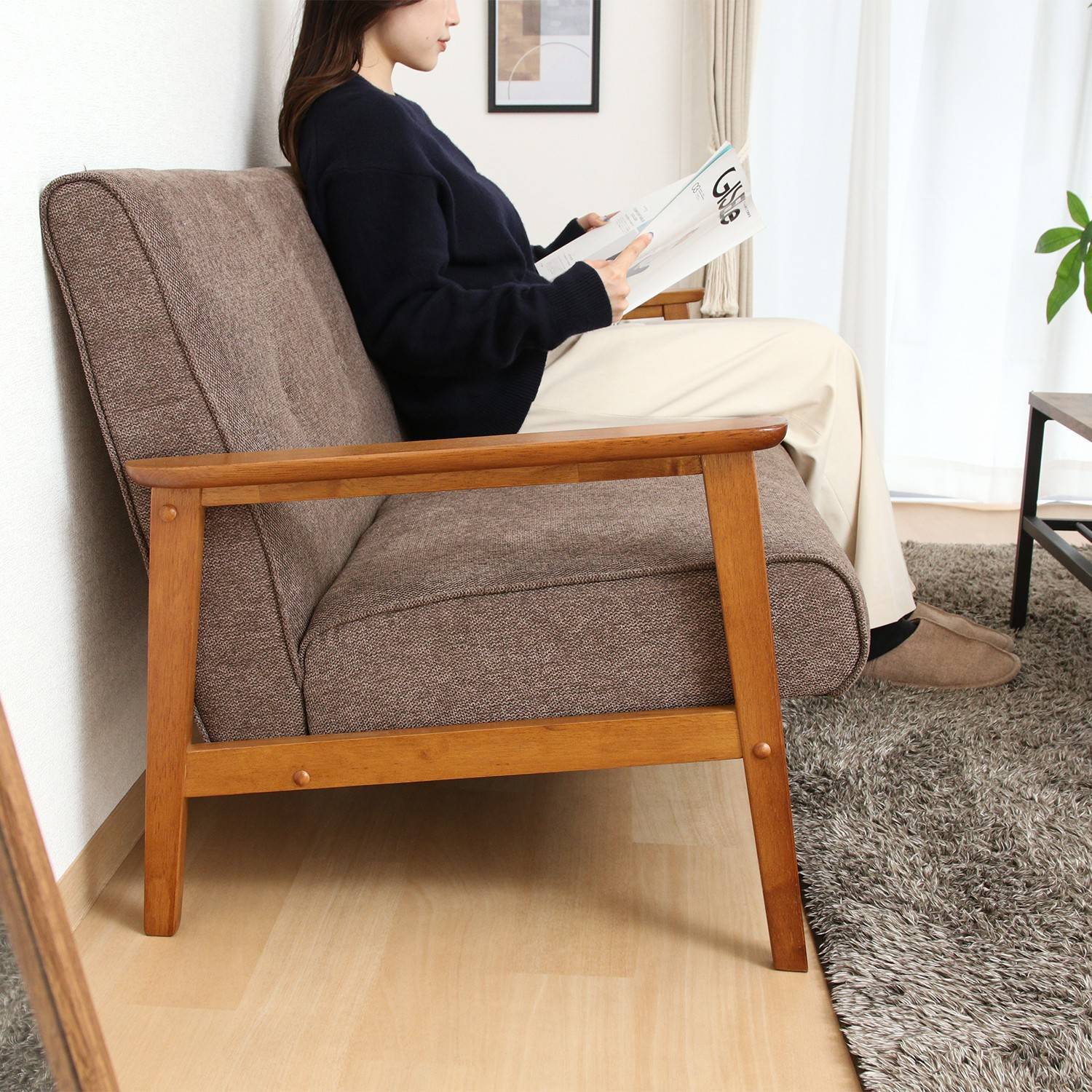 ひじ掛けがあるので立ち座りもしやすく、少し傾斜のある座面で身体が自然ともたれるデザインになっています。